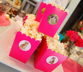 Gold buckets, plush kittens, cat stamps, cat stickers, pink popcorn boxes, square gold paper plates- Oriental Trading